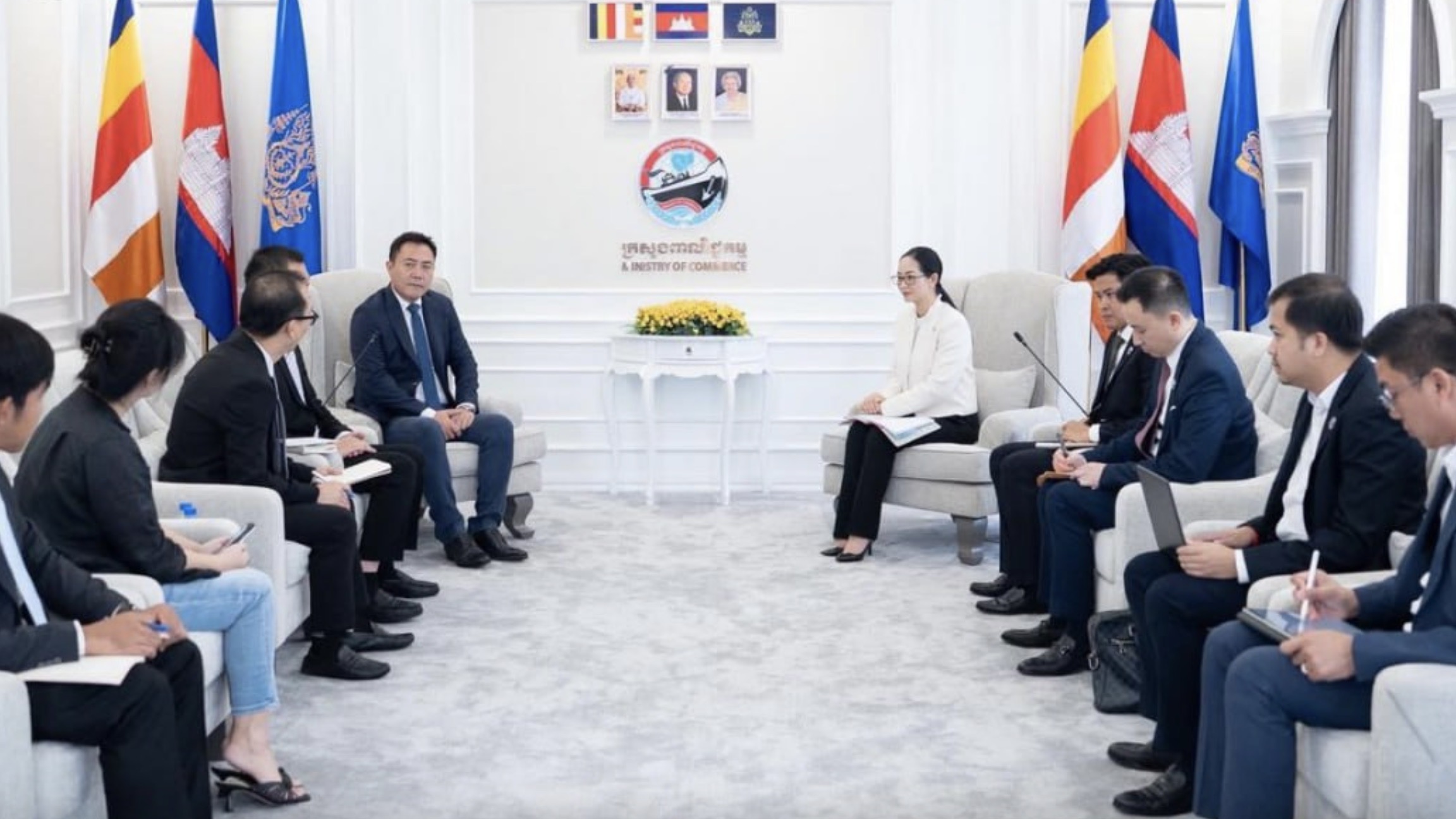 近日,柬埔寨商务部部长占尼莫尔(Cham Nimul)接见Long Wo柬埔寨有限公司与Zhong bao柬埔寨食品有限公司代表团,就农产品加工出口升级展开磋商,并明确政府将为企业扩产计划提供支持。