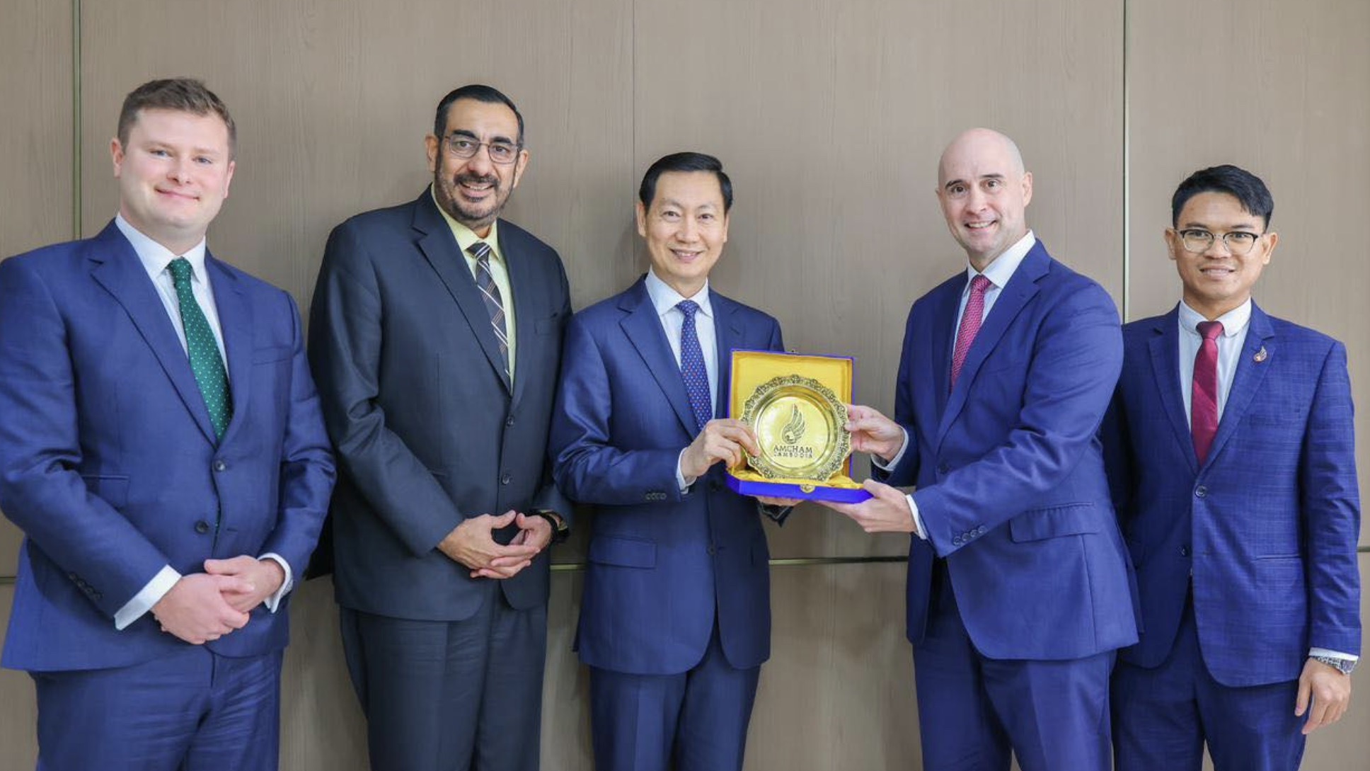柬埔寨矿产与能源部部长乔拉达纳(左三)与美国石油巨头埃克森美孚公司代表会晤