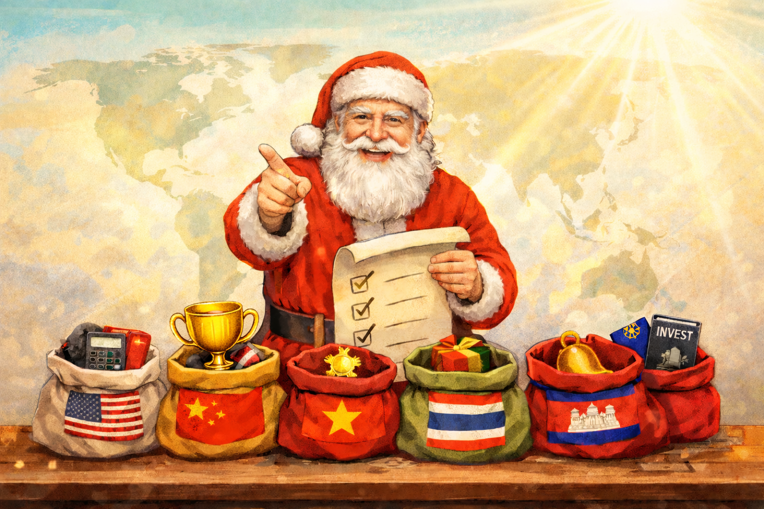 前两天看了FT中文网的一篇社评,叫“圣诞老人会如何评判各经济体”,这个视角极具创意。今天老孙也效仿一下FT中文网,来评价一下和本轮产业转移关联度最高的5个国家,看看他们分别从圣诞老人那里分得了什么礼物?