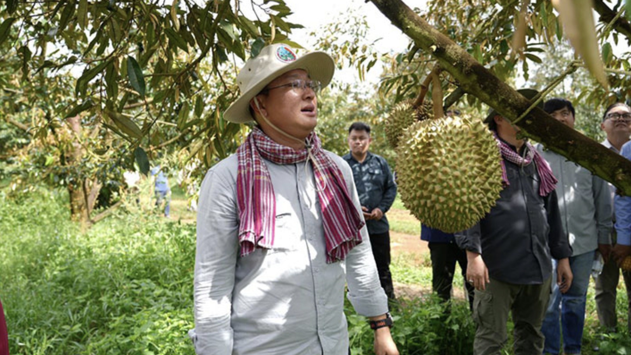 柬埔寨农林渔业部部长邓迪那访问菩萨省榴莲农场