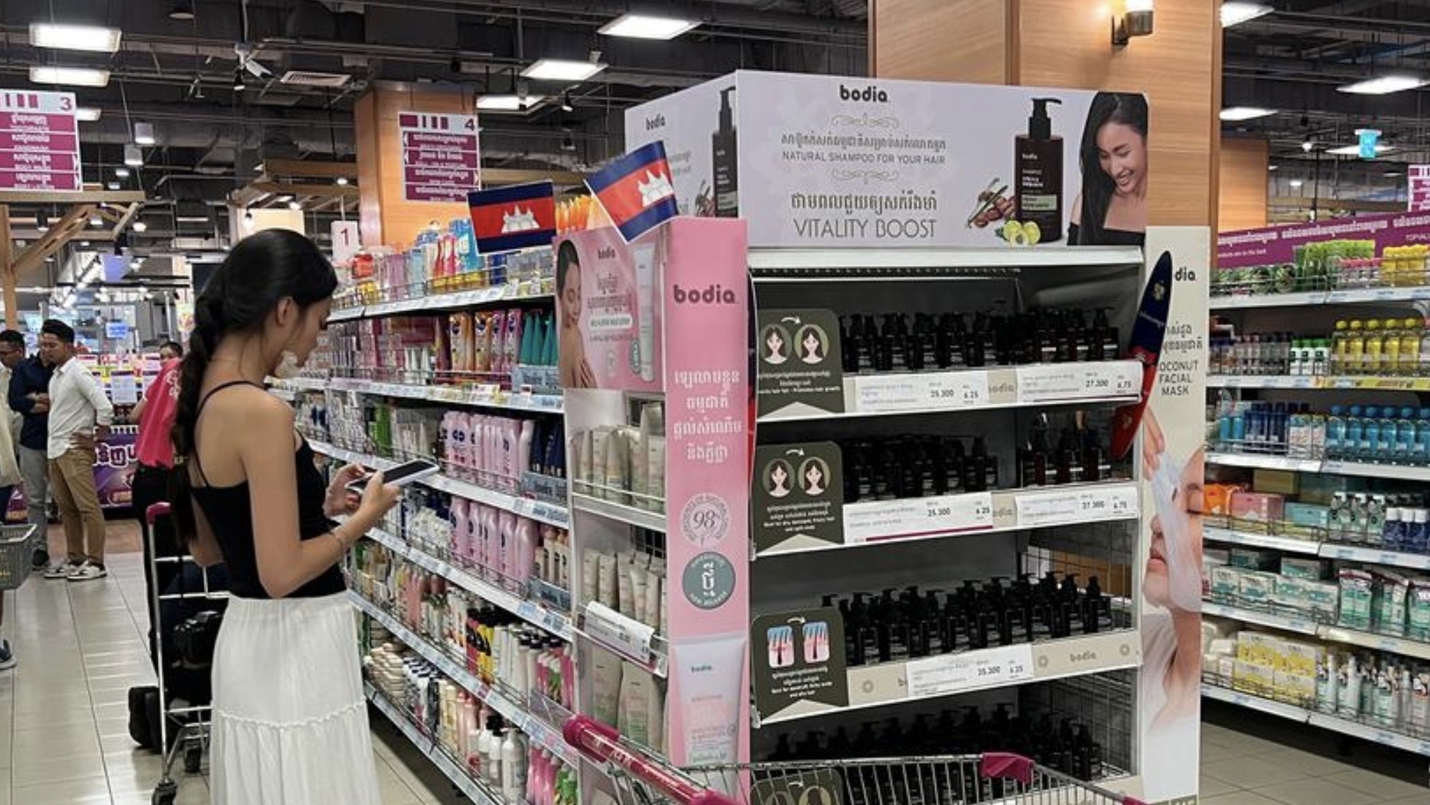 与零售商合作能打破这一僵局。在永旺、Lucky、Chip Mong等大型超市设立专门的“Proudly Cambodian”专区,能让本土商品更易被发现。