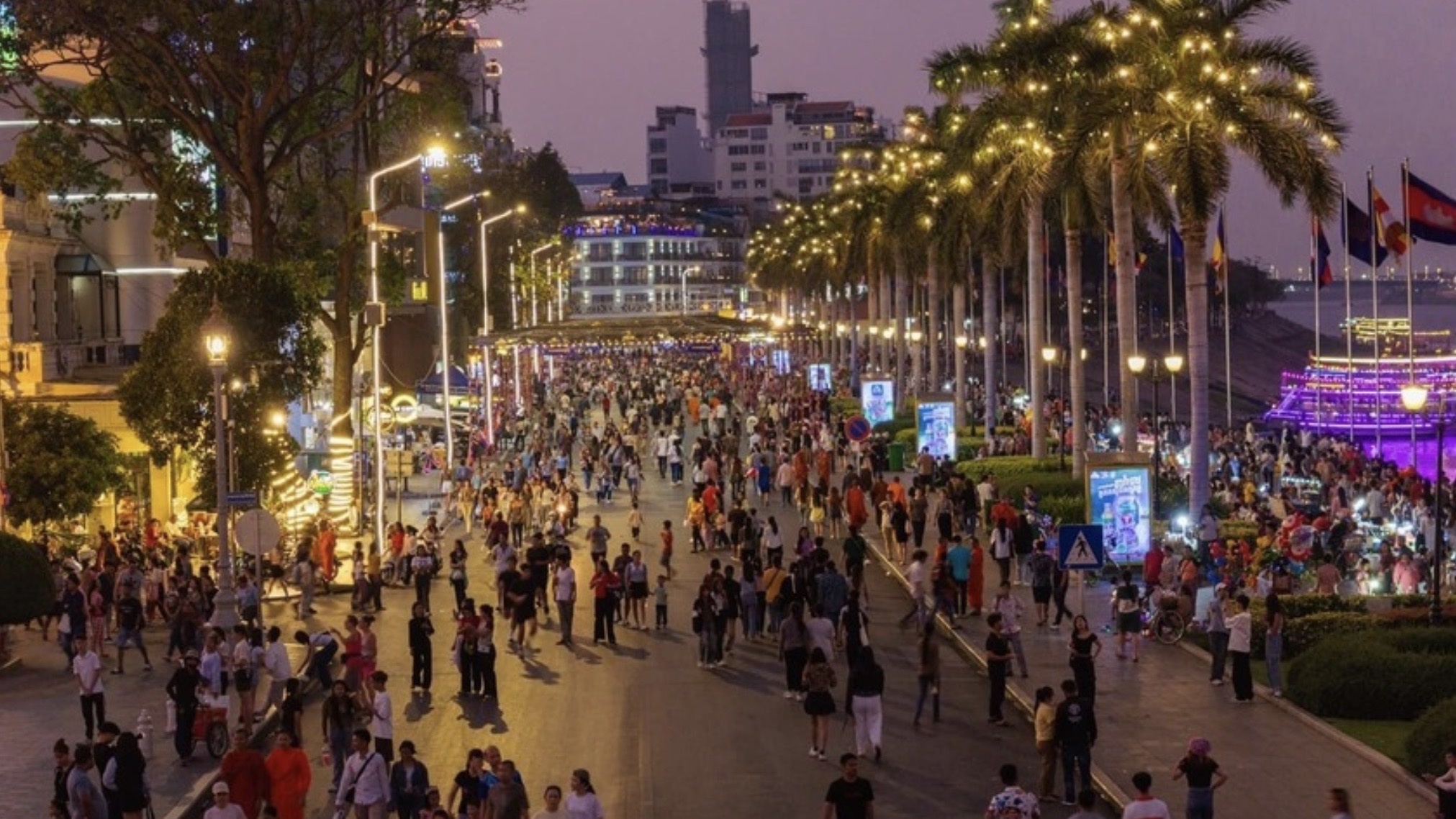 柬埔寨旅游部表示:“在河畔步行街试行运营后,金边已经超越了全球各大主要城市,成为世界上第二具吸引力的夜生活目的地。”