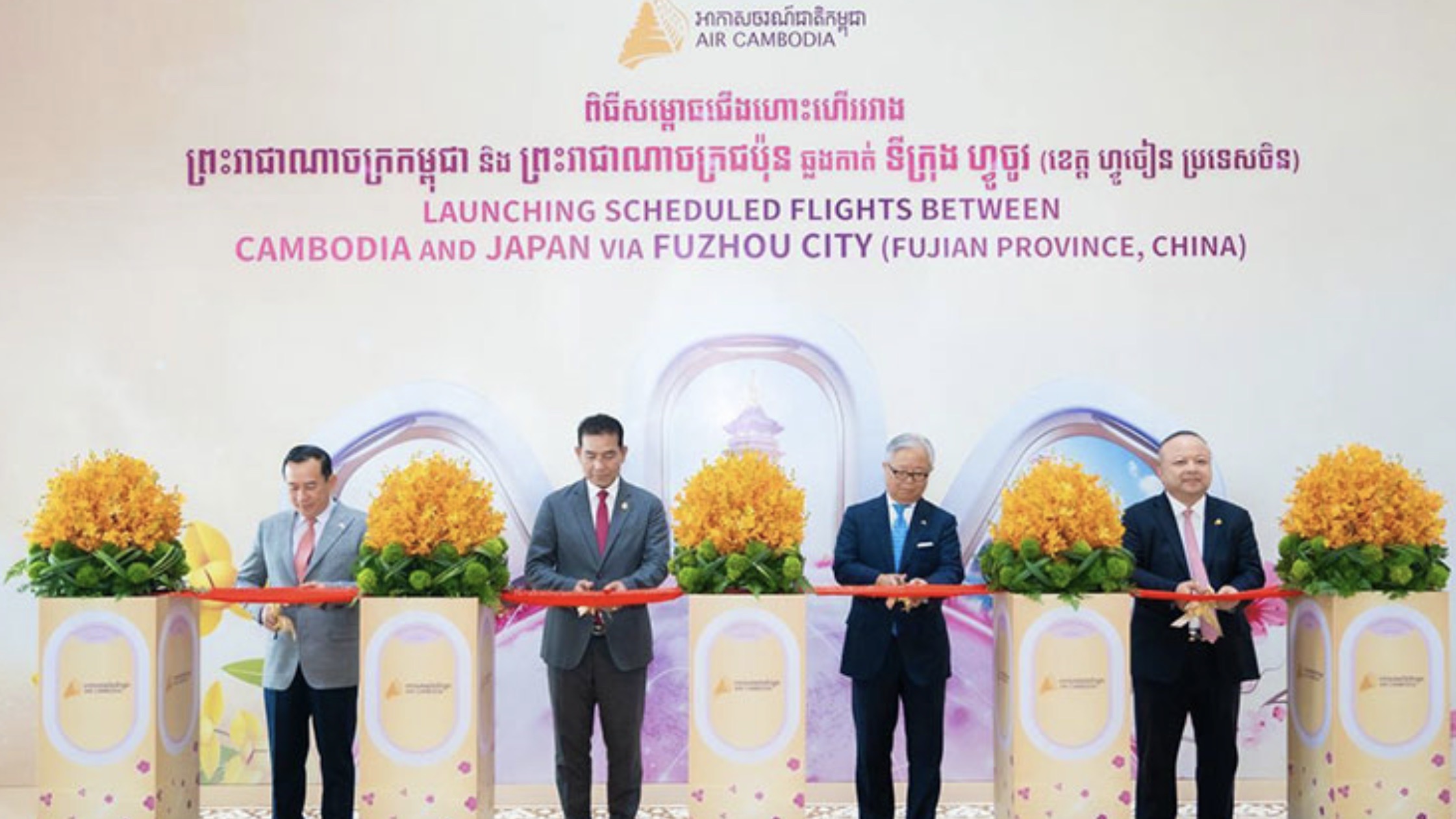 新航线落成典礼在德崇国际机场(Techo International Airport)举行,由柬埔寨旅游部部长华合(Huot Hak )主持,柬埔寨民航局国务秘书处部长毛哈万纳(Mao Havannall)、日本驻柬埔寨大使植野笃志(Ueno Atsushi)、柬埔寨国家航空首席执行官湛大卫(Zhan David)等政企官员出席。